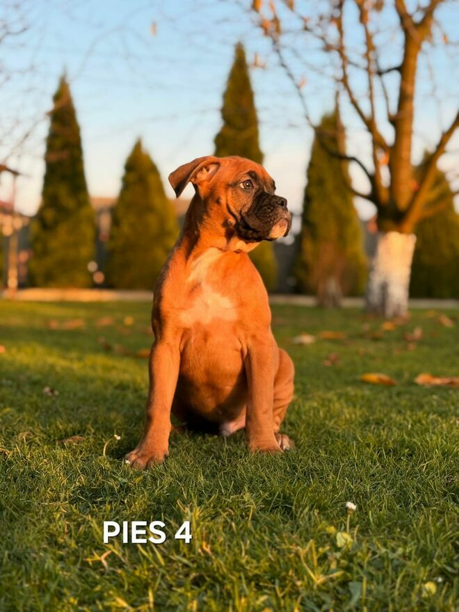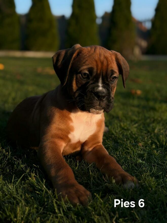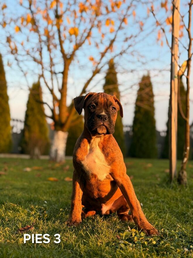 Witam wszystkich miłośników rasy Bokser. Mamy na sprzedaż szczeniaki rasy Bokser urodzone 24.08.2025 maści brązowej i pręgowanej. Szczeniaki ją wesołe i energiczne posiadają książeczki zdrowia ze wszystkimi szczepieniami, Rodowód, Czip.Więcej informacji pod telefonem. Szczeniaki są gotowe do zmiany właściciela. Zapraszam.Powiadom o podobnych ogłoszeniach